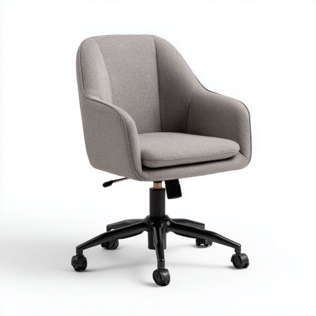 Chaise de bureau pivotante avec revêtement en tissu et accoudoirs intégrés - Gris