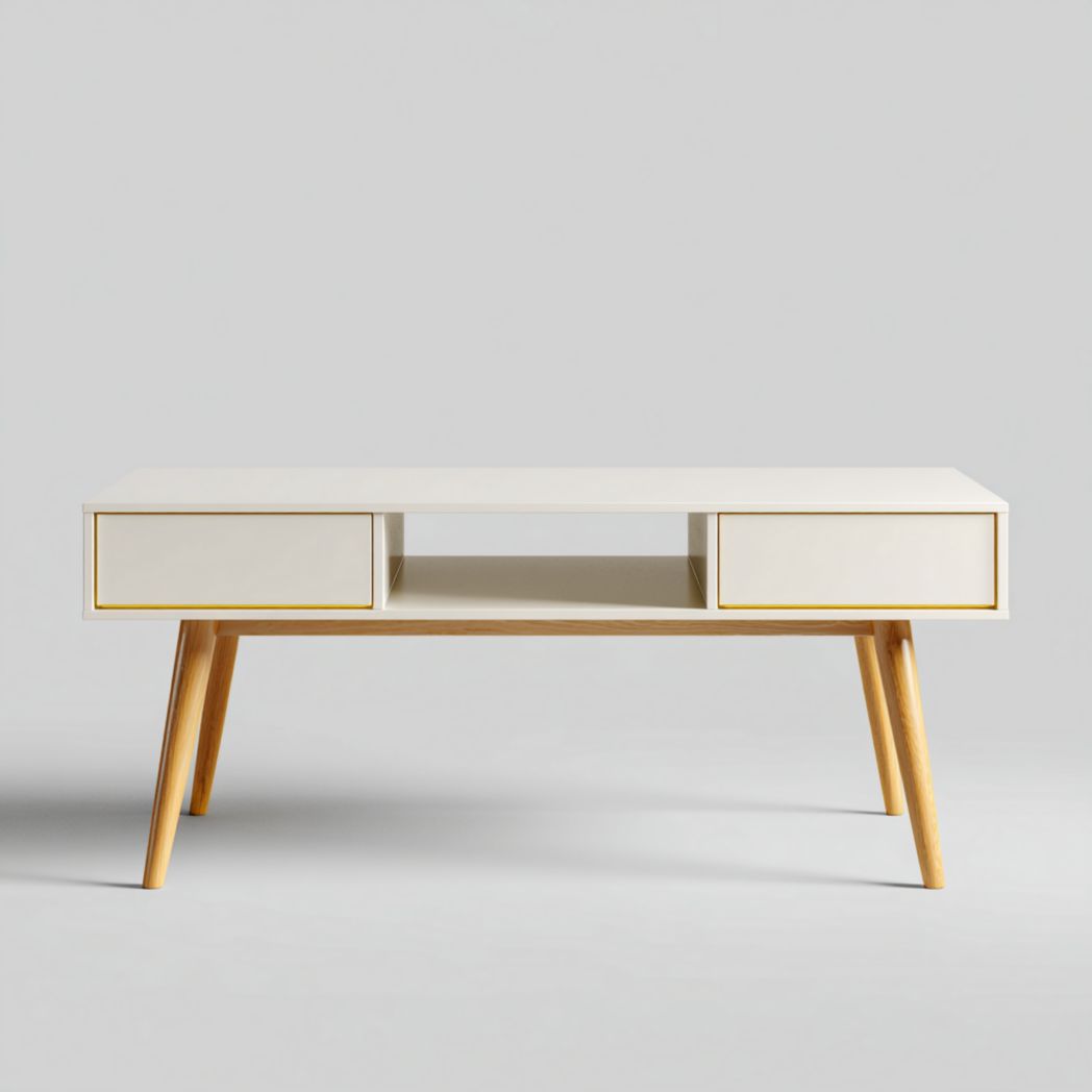 Table de Café Rectangulaire Blanche avec 2 Tiroirs et Rangement Central